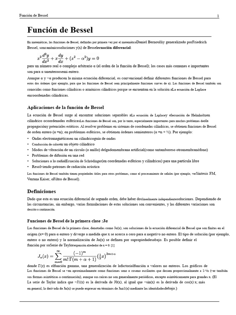 En matemáticas, las funciones de Bessel, definidas por primera vez por el matemáticoDaniel Bernoulliy generalizado porFriedrich