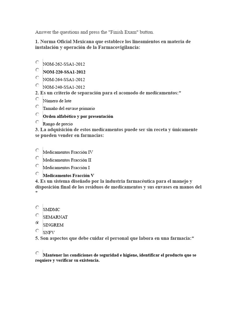 Answer the questions and press the "Finish Exam" button.