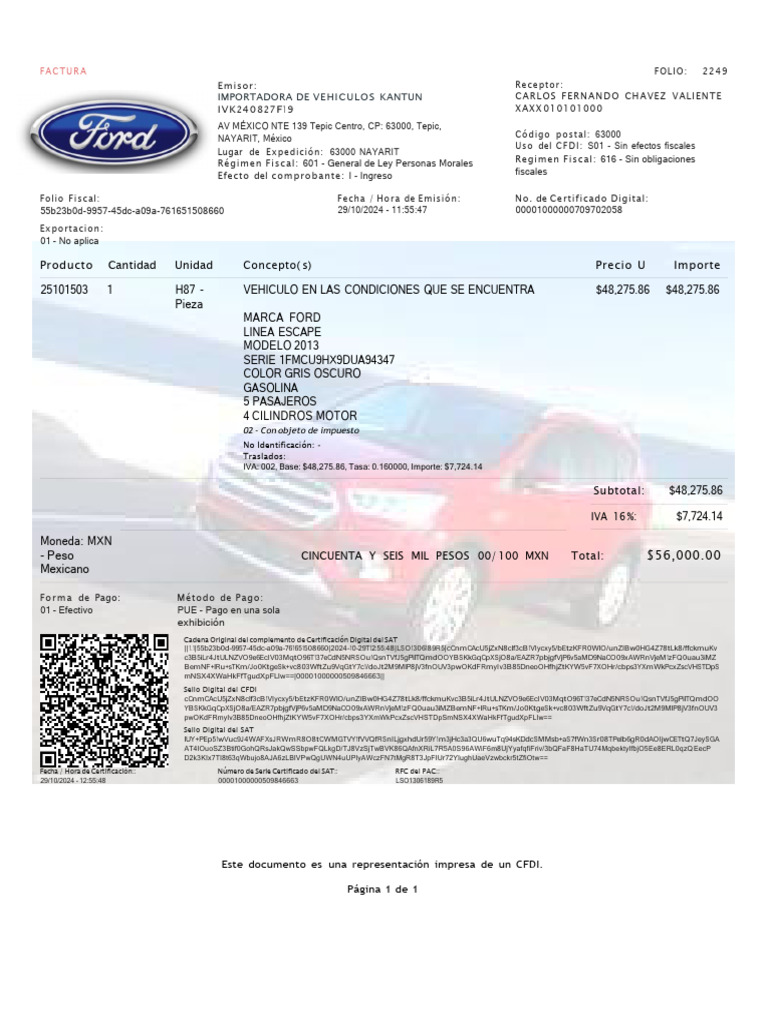 IMPORTADORA DE VE HI CULO S KANTUN CAR L OS F E R N AN D O CH AVE Z V ALI EN T E