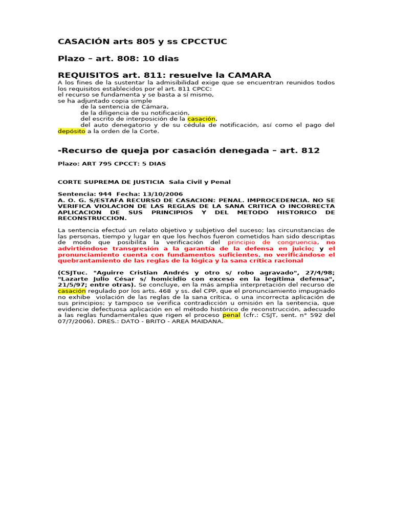 CASACIÓN arts 805 y ss CPCCTUC