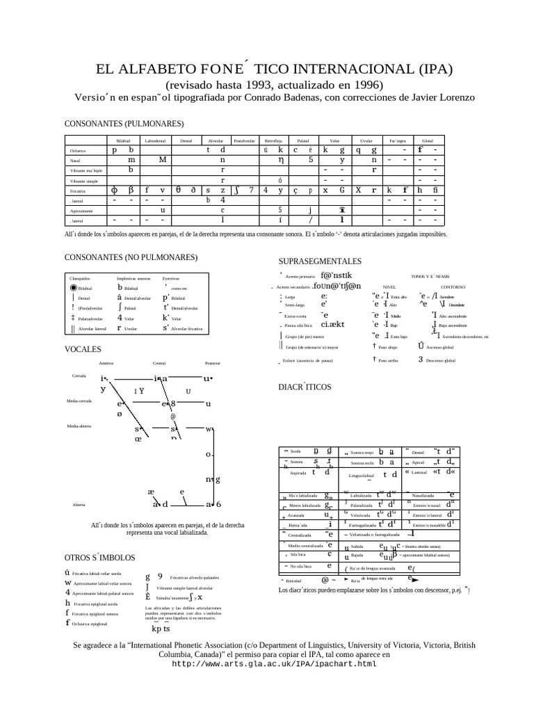 Se agradece a la “International Phonetic Association (c/o Department of Linguistics, University of Victoria, Victoria, British
