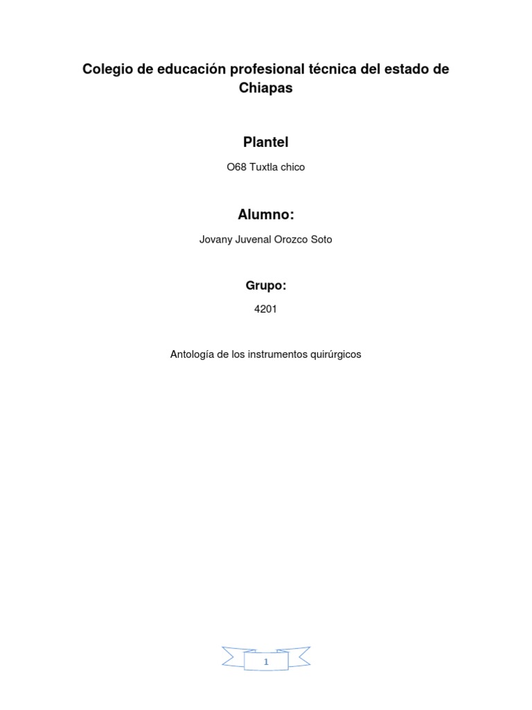 La presente antologa ha sido elaborada con la finalidad de conocer los elementos necesarios para el manejo adecuado de la gran diversidad del instrumental quirrgico y a la vez un panorama de los conocimientos y practica dentro del quirfano en las cuales brinda una precisa orientacin acerca del instrumental en cada uno de los pasos a seguir.