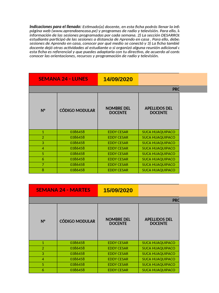Indicaciones para el llenado: Estimado(a) docente, en esta ficha podrás llenar la información para hacer el