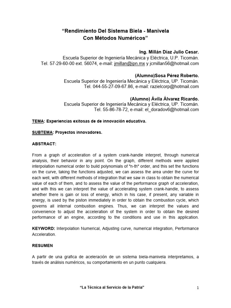 sistema biela manivela, para así poderse aplicar a un motor y reducir el costo para el