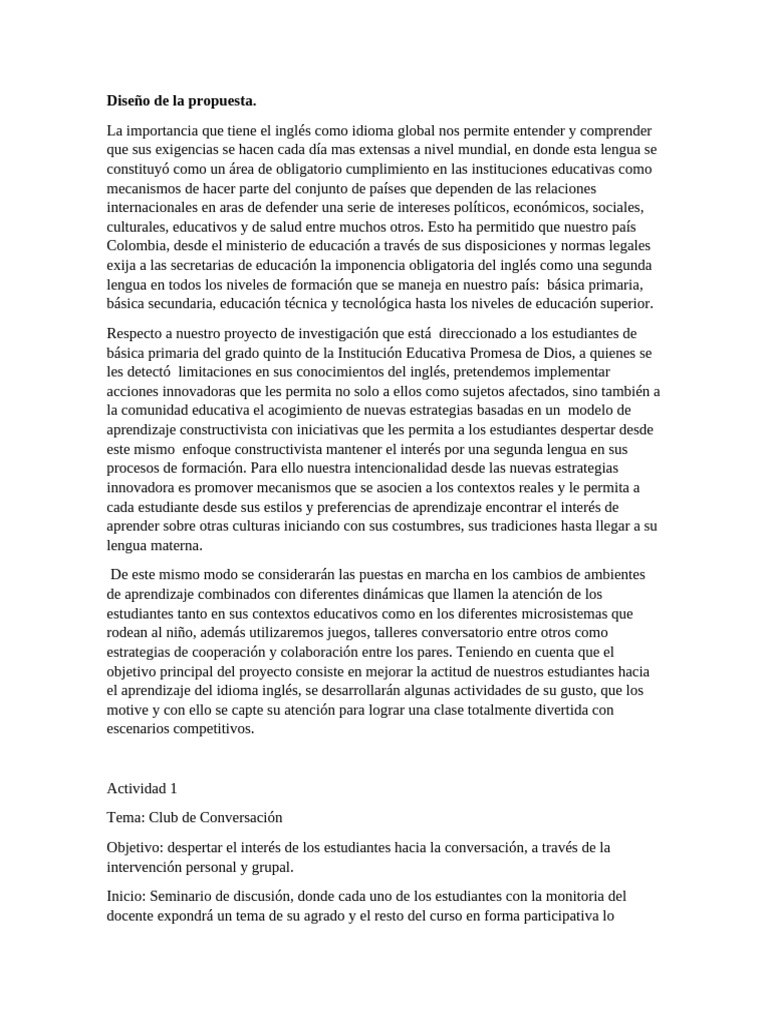 les detectó limitaciones en sus conocimientos del inglés, pretendemos implementar