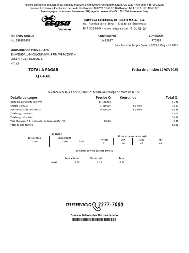 Si cancela después del 11/08/2025 tendrá un recargo de mora de Q 0.59