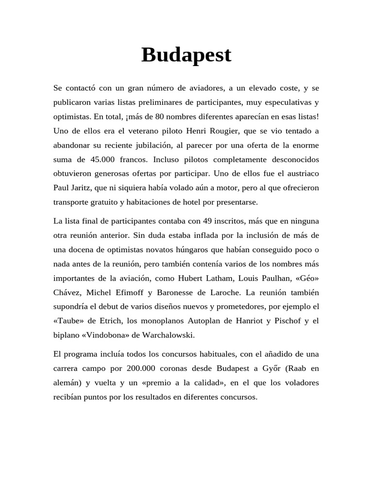 Budapest. Esta prueba tenía la fabulosa dotación de 200.000 coronas, de las