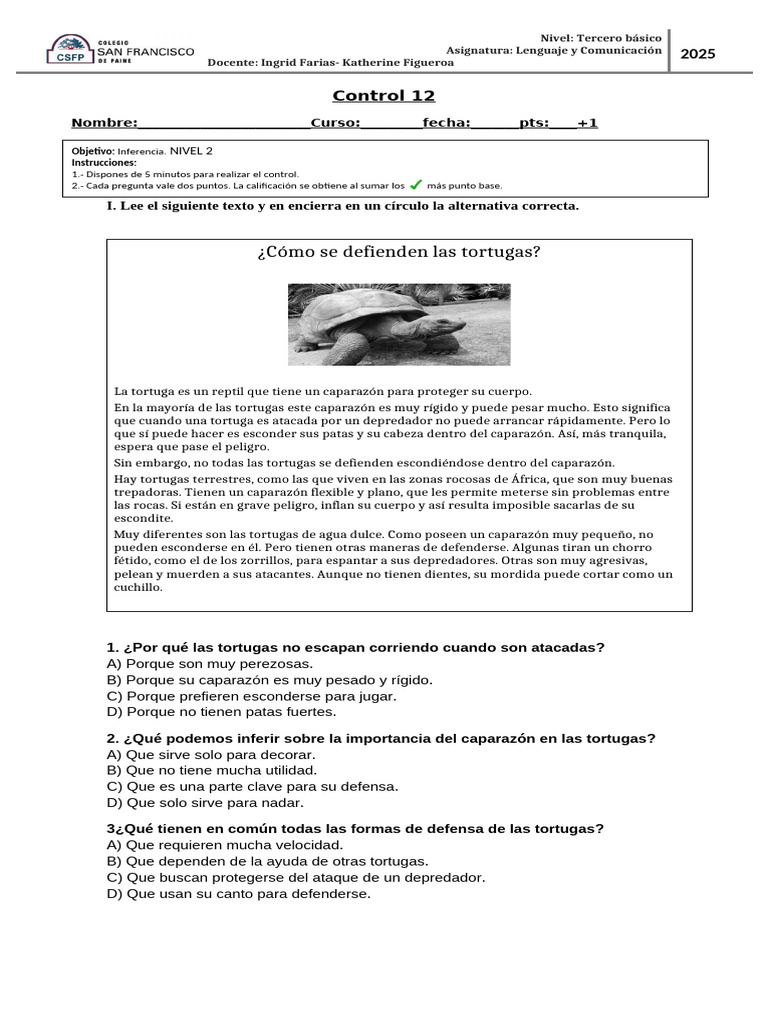 1. ¿Por qué las tortugas no escapan corriendo cuando son atacadas?