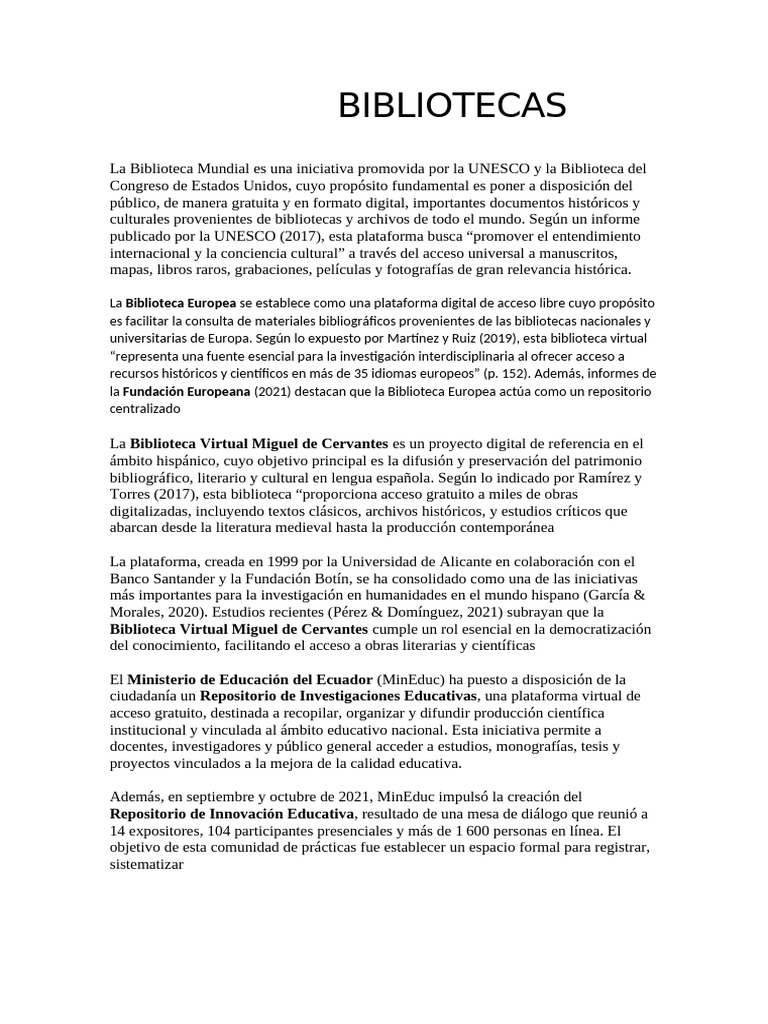 bibliográfico, literario y cultural en lengua española. Según lo indicado por Ramírez y