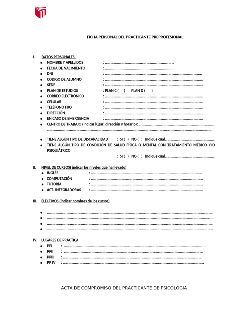 ACTA DE COMPROMISO DEL PRACTICANTE DE PSICOLOGIA