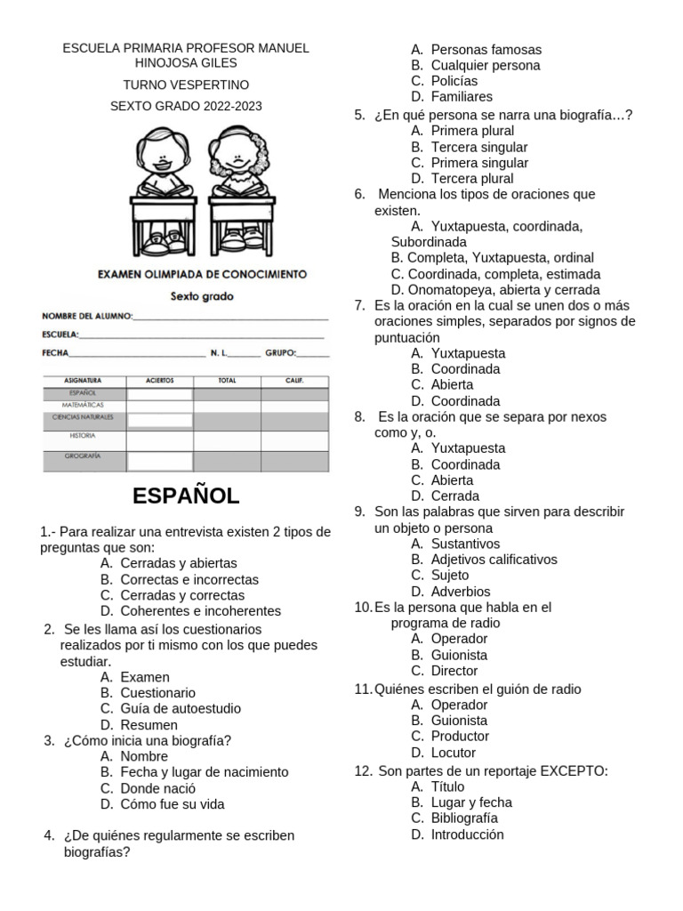 A. Cerradas y abiertas B. Adjetivos calificativos