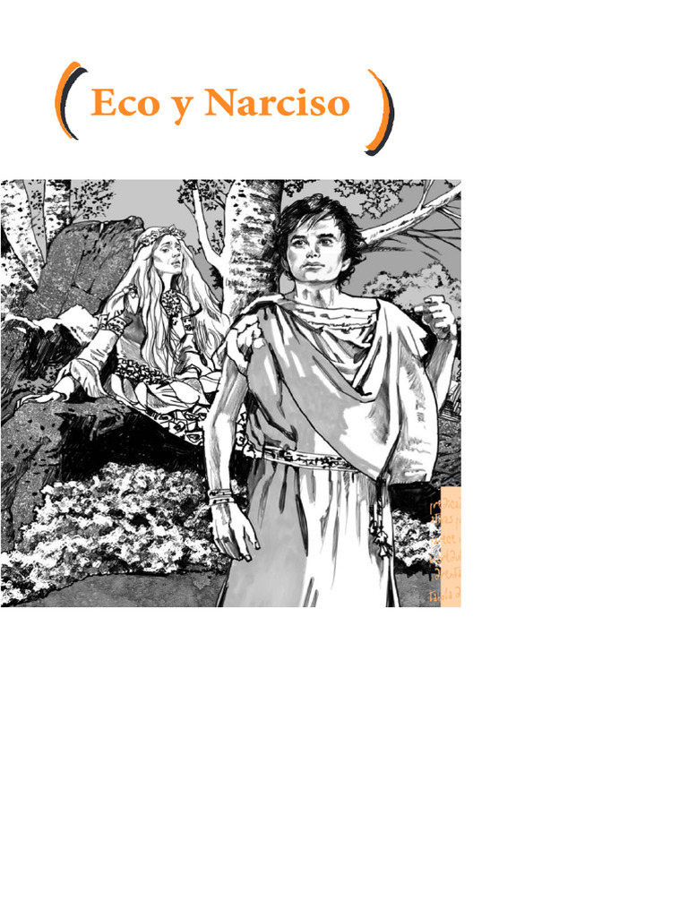 Eco, una ninfa, es maldecida por Hera y pierde la capacidad de hablar, solo pudiendo repetir las últimas palabras que escucha. Se enamora de Narciso, un joven hermoso que la rechaza, lo que la lleva a consumir su vida en tristeza. Narciso, al enamorarse de su propia imagen en un estanque, muere, y de su cuerpo nace la flor llamada narciso.