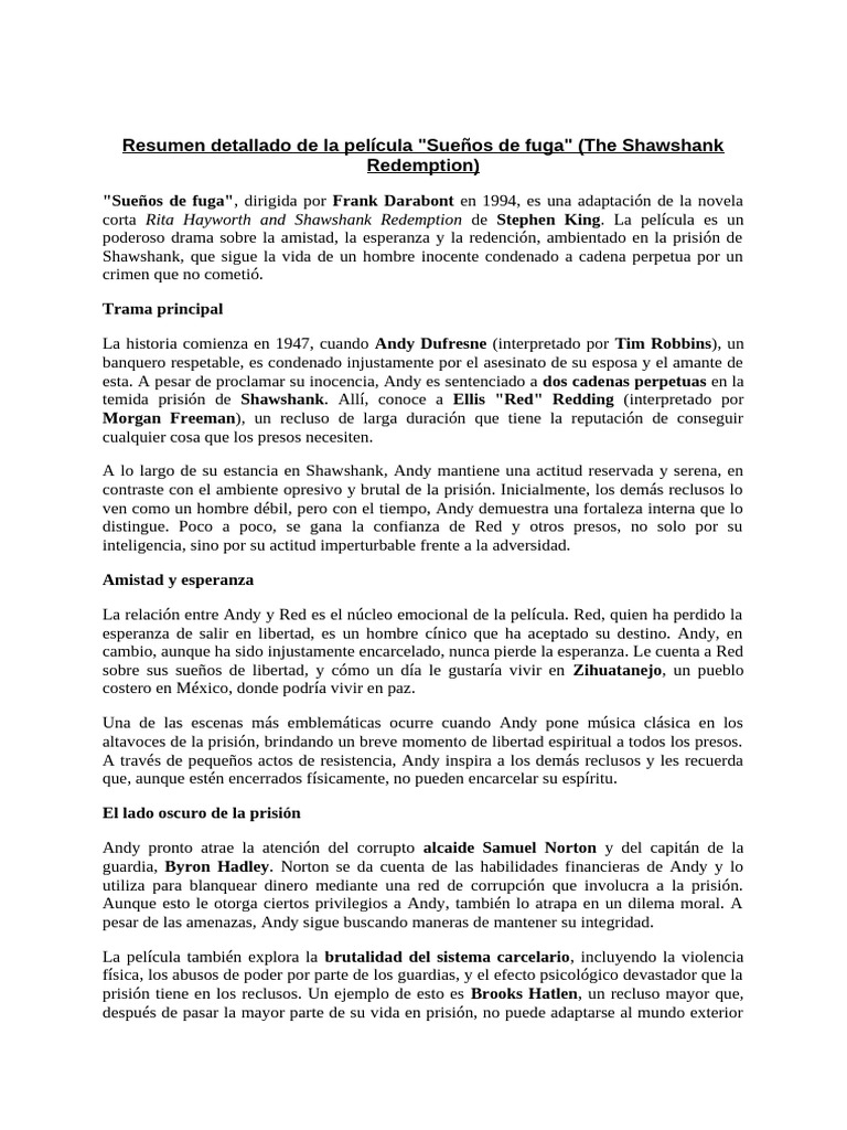 Resumen detallado de la película "Sueños de fuga" (The Shawshank