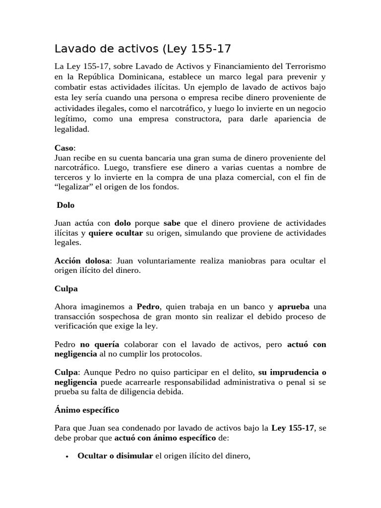 La Ley 155-17, sobre Lavado de Activos y Financiamiento del Terrorismo
