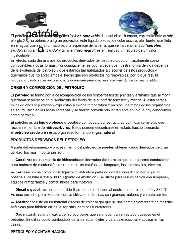 el siglo XX, ha obtenido un gran provecho. Este líquido oleoso, de color oscuro, olor fuerte, que flota