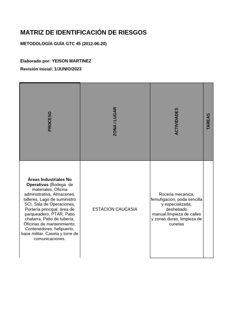 Ejemplo de la table de peligros (NTC 45)