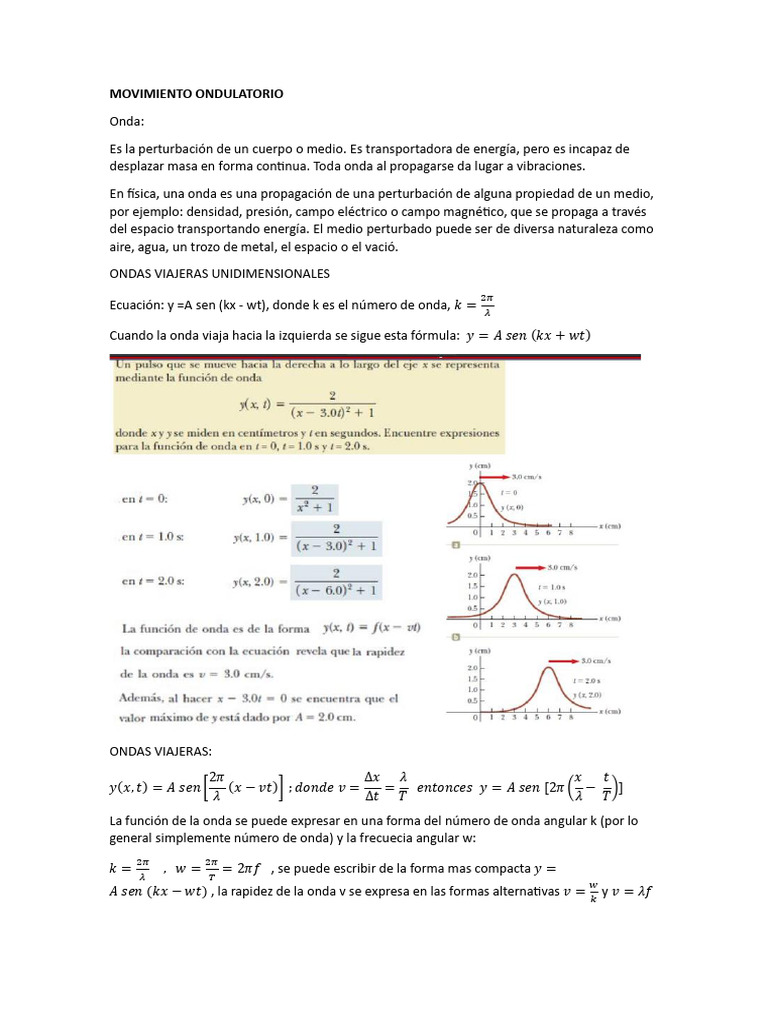 Ecuación: y =A sen (kx - wt), donde k es el número de onda, 𝑘 =
