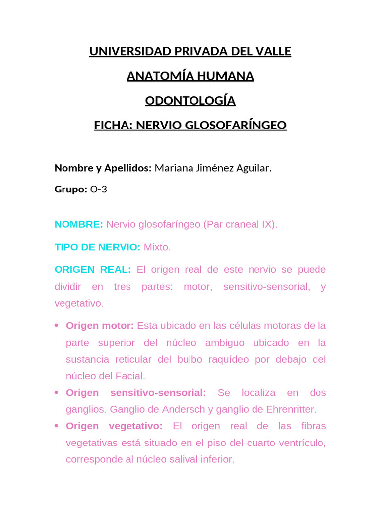 NOMBRE: Nervio glosofaríngeo (Par craneal IX).