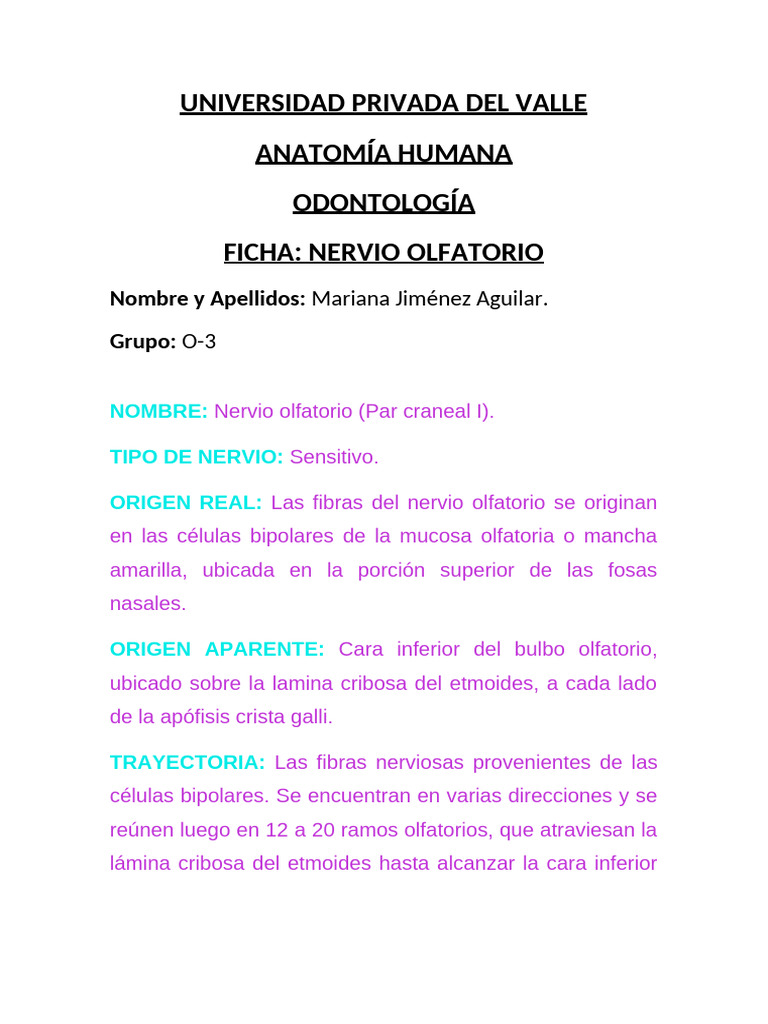 FICHA: NERVIO OLFATORIO