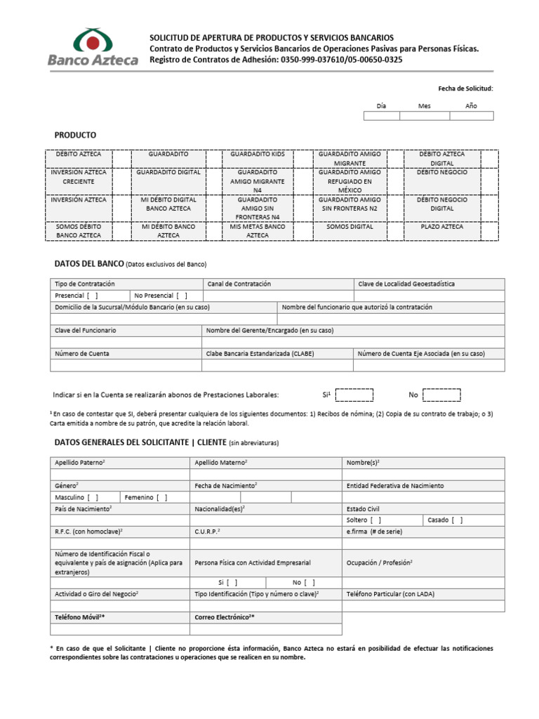 * En caso de que el Solicitante | Cliente no proporcione ésta información, Banco Azteca no estará en posibilidad de efectuar las notificaciones
