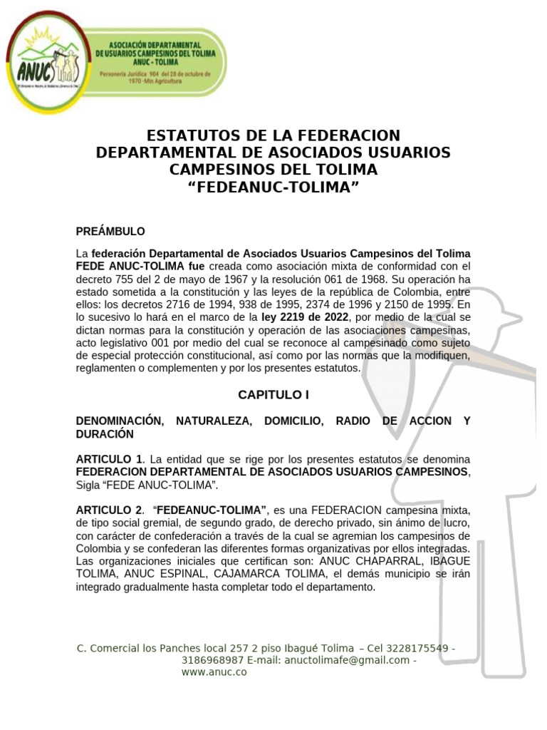 ARTICULO 2. “FEDEANUC-TOLIMA”, es una FEDERACION campesina mixta,
