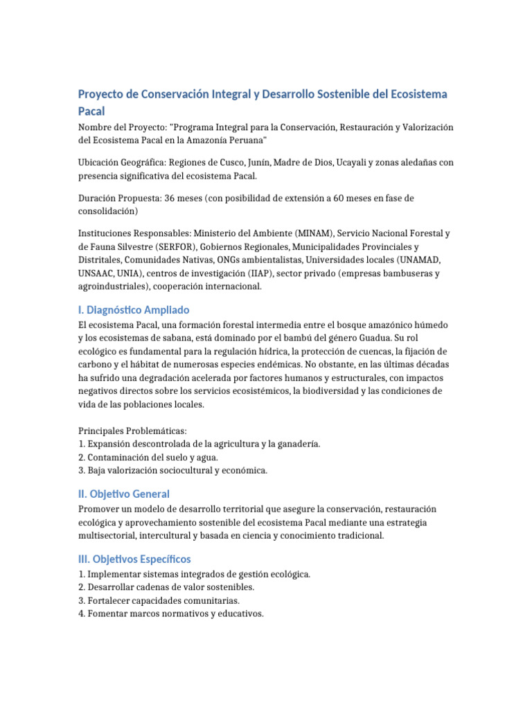 Proyecto de Conservación Integral y Desarrollo Sostenible del Ecosistema