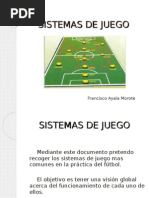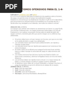 El documento describe el sistema táctico 1-4-3-3, que se originó en Brasil en las décadas de 1950 y 1960 y sigue siendo ampliamente utilizado. Explica que la mayoría de los clubes holandeses utilizan este sistema, que favorece el estilo de juego espectacular y ofensivo que practican. Además, detalla las características clave de cada posición en este sistema y proporciona ejemplos de ejercicios ofensivos que los jugadores pueden practicar para perfeccionar los automatismos requeridos.