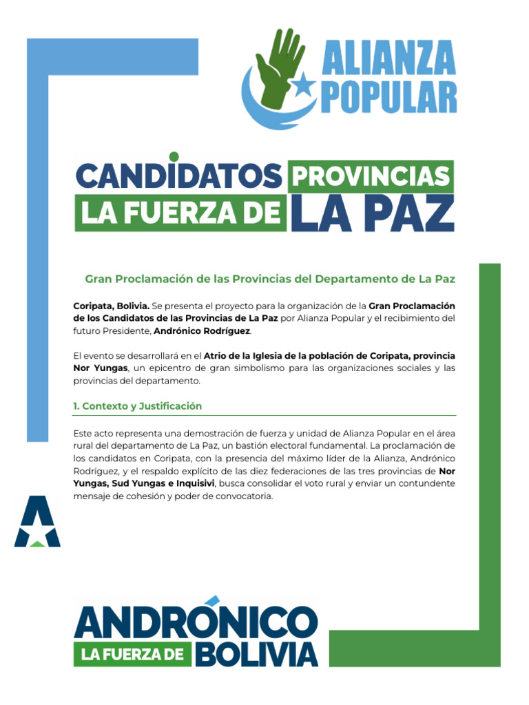 de los Candidatos de las Provincias de La Paz por Alianza Popular y el recibimiento del