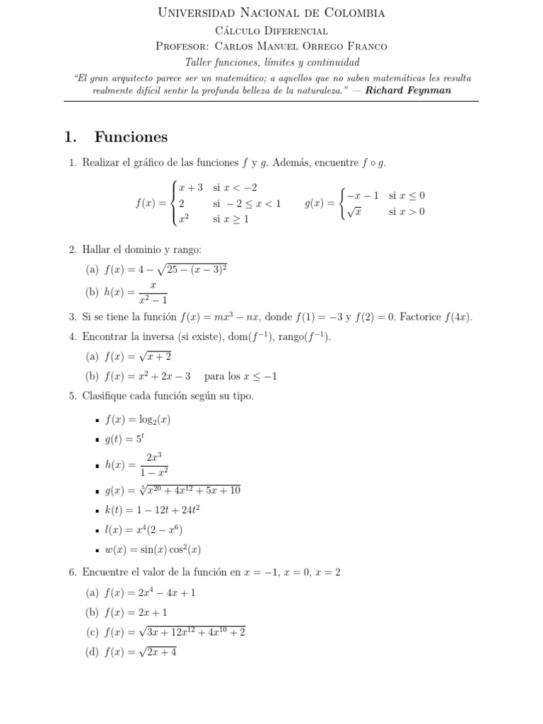 Taller funciones, lı́mites y continuidad