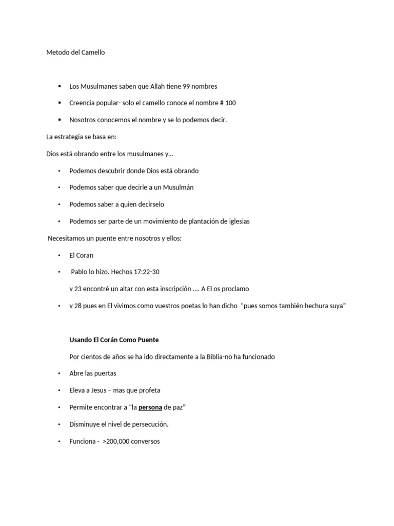 • Como debe usarse el plan de salvación “Corbani” después que El Método Camello ha sido