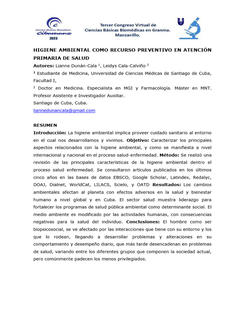 Curbeira Hernández Eduardo, Sánchez Barrera Odalys. Salud ambiental,