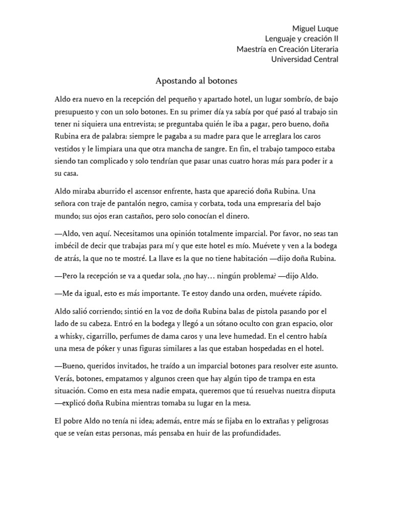 Aldo era nuevo en la recepción del pequeño y apartado hotel, un lugar sombrío, de bajo