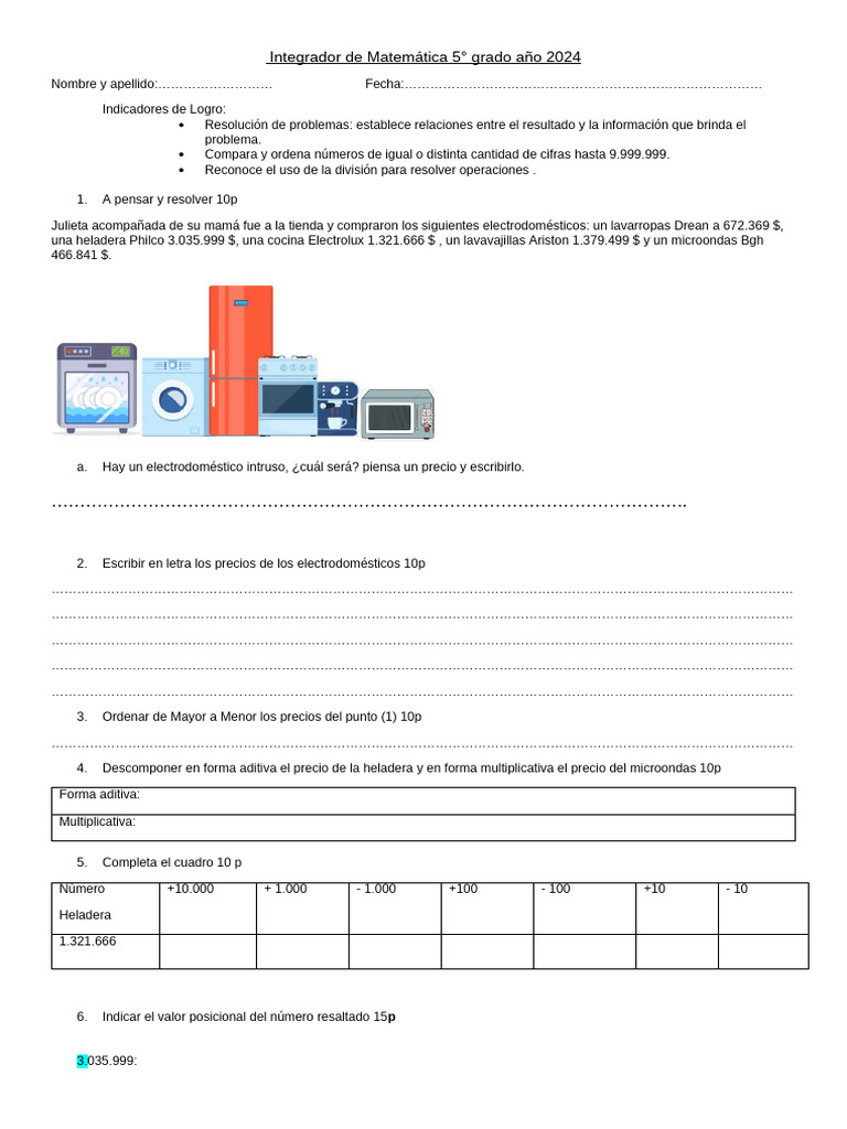 4. Descomponer en forma aditiva el precio de la heladera y en forma multiplicativa el precio del microondas 10p