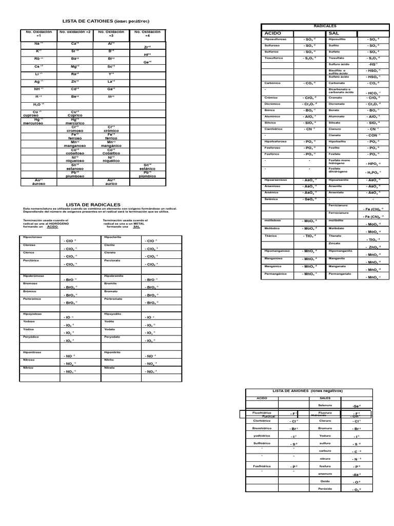 LISTA DE ANIONES (iones negativos)