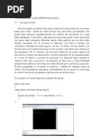 Ing. Ivn Medrano Valencia 1. OBJETIVO. Comprender el concepto de multihilado. Aprender a crear, manejar y destruir hilos. Entender el ciclo de vida de un hilo. 2. BASE TEORICA COMPLEMENTARIA CONCEPTO DE HILO (Thread). Un proceso es un programa en ejecucin que es localizado en la memoria por el sistema operativo. Un hilo es una ejecucin o flujo de control en el espacio de direcciones de un proceso. Un proceso puede tener mas de un hilo. Todos los hilos en un proceso tienen su propio contador de programa y su propia pila para variables locales y direcciones de retorno de invocacin de procedimientos. En la figura observamos cmo sobre una CPU pueden estar ejecutndose distintos procesos pesados y uno de ellos puede estar compuesto por distintos flujos de ejecucin (threads o hebras o hilos). Estas threads tendrn que disputarse el tiempo de ejecucin que el S.O. le d al proceso en el que residen.