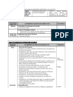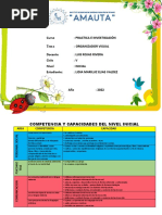 Momentos y Estrategias Recibimos a nuestros nios Realizamos actividades permanentes. MOTIVACION: Se les entregar a cada nio un globo. Inflamos un globo y aspiramos el aire RECUPERACION DE SABERES PREVIOS: Preguntamos: Qu est sucediendo? Porqu se infla el globo y por qu se desinfla?. Nos tapamos la nariz y cerramos la boca Qu sucede, podemos respirar con la nariz tapada y la boca cerrada? CONFLICTO COGNITIVO: Qu necesitamos para poder respirar? Cmo se llaman estos rganos? PROCESAMIENTO DE LA INFORMACIN: Se pregunta a los nios De qu tratar el tema de hoy? Los nios infieren el tema La maestra presenta el tema. hoy aprenderemos sistema respiratorio ACTIVIDAD N1: Se les presentar una lmina sobre El sistema Respiratorio , se explica los rganos que lo conforman y su funcin principal.. ACTIVIDAD N2: Luego formarn grupos de trabajo y se les entregar a cada grupo papelotes para que reconozcan los pulmones pintndolos. ACTIVIDAD N3: Despus cada grupo presentarn sus trabajos y por turno sealarn los pulmones y su funcin ; la profesora har las correcciones pertinentes y orientar los cuidados que debemos tener con nuestros pulmones . APLICACIN DE LO APRENDIDO: Los nios trabajarn la hoja grfica pegando plastilina roja sobre los pulmones. METACOGNICION: Preguntaremos: Qu han aprendido?, Cmo se han sentido? Todas las personas tienen pulmones? Cuntos pulmones tenemos? Los nios y adultos tendrn el mismo tamao de pulmn? EXTENSIN Dialoga con papi sobre los cuidados que debemos tener con nuestro sistema respiratorio. 4.Matriz de evaluacin: Capac. Indicador (Capacidad + contenido + producto o condicin) rea C.A Identifica los rganos que forman el sistema respiratorio en material grfico. Hoja de libro Lmina 1h Tiempo aproximado por actividad Medios y materiales
