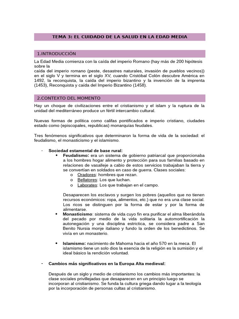 TEMA 3: EL CUIDADO DE LA SALUD EN LA EDAD MEDIA