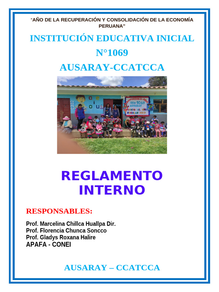 Inicial 1069”, actualizado por el personal directivo, docente y administrativo de la
