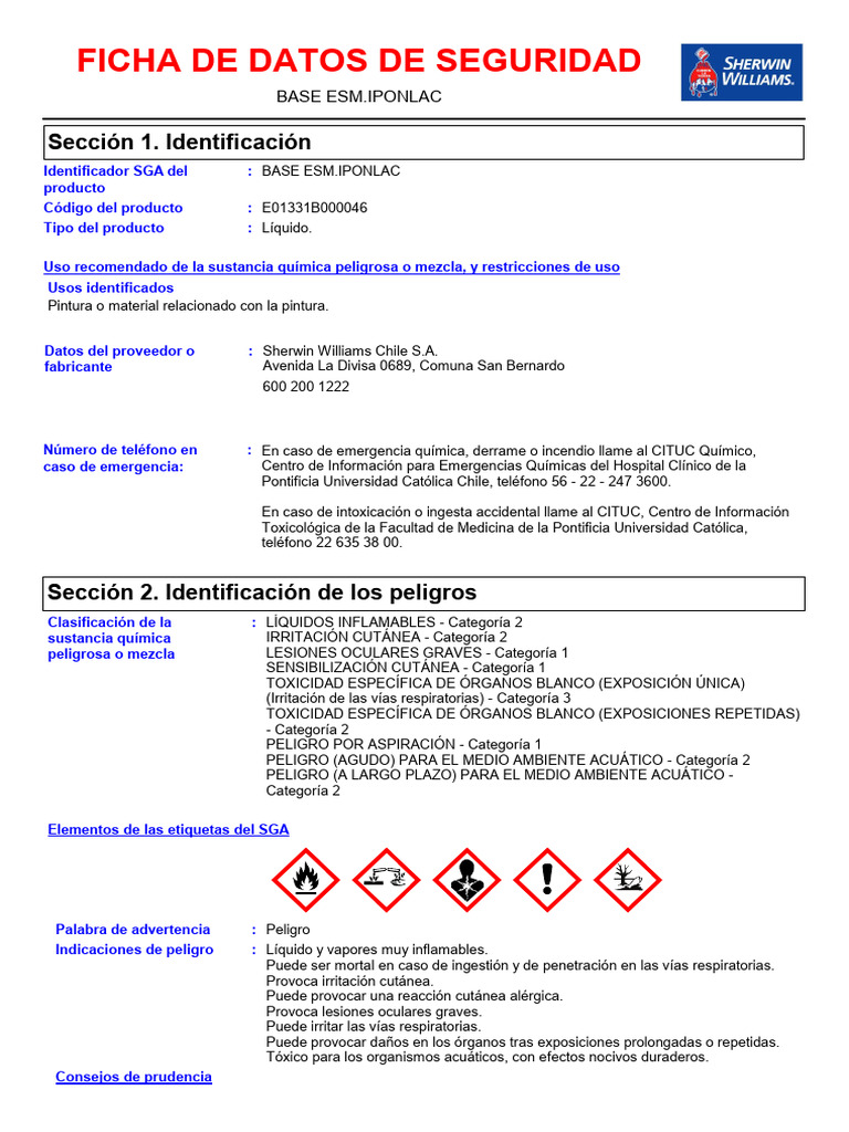 Datos del proveedor o : Sherwin Williams Chile S.A.