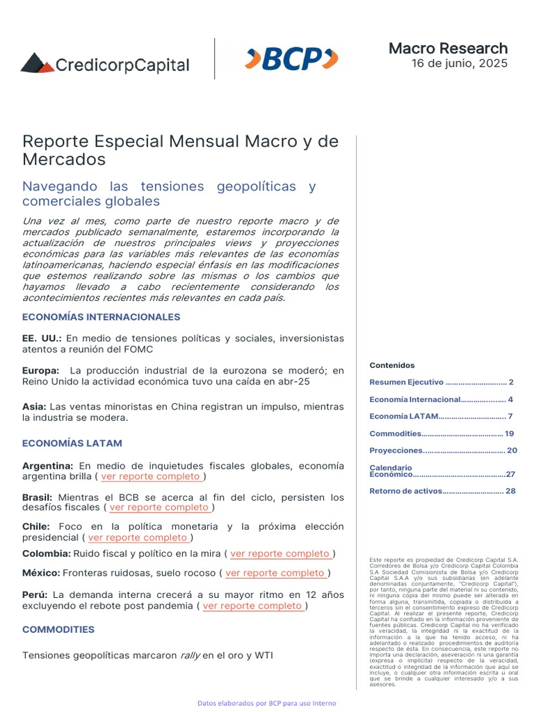 tomarse como recomendaciones de Credicorp Capital. La información contenida en este reporte es de