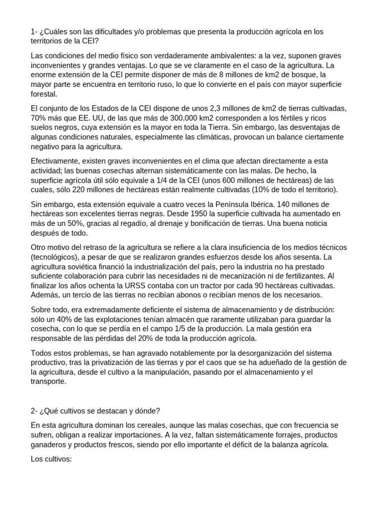 y la producción, el más importante de todos los cereales. En los Estados de la CEI se obtiene