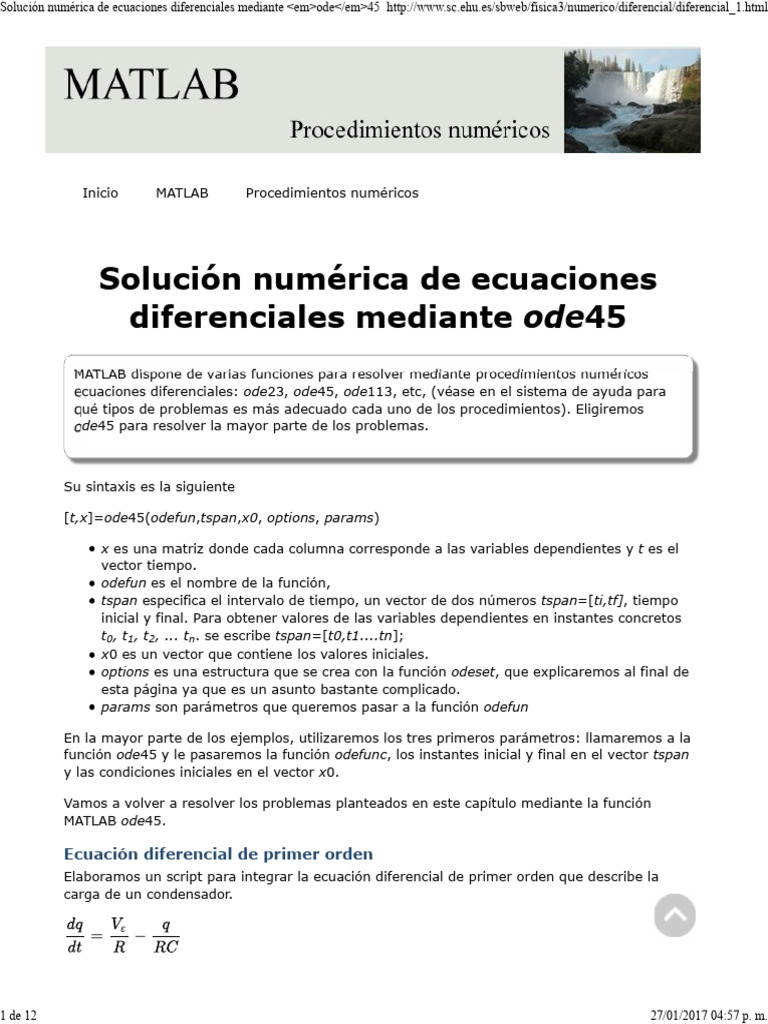 MATLAB dispone de varias funciones para resolver mediante procedimientos numéricos