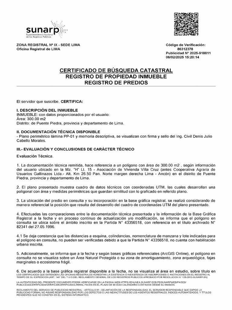 Solicitud N° : 2025 - 918811 1:800 página 6 de 6 OFICINA REGISTRAL DE LIMA