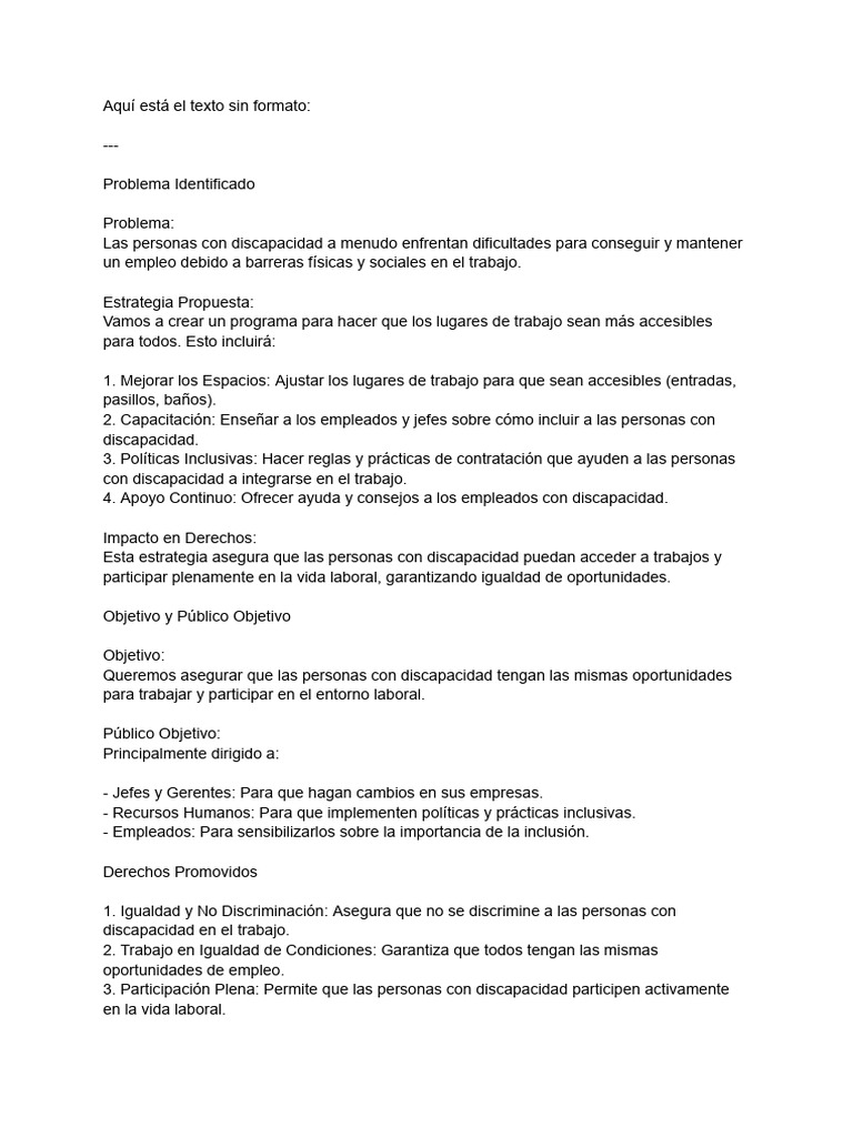 trabajo se beneficiarán. Esto mejorará la vida de las personas con discapacidad y creará un