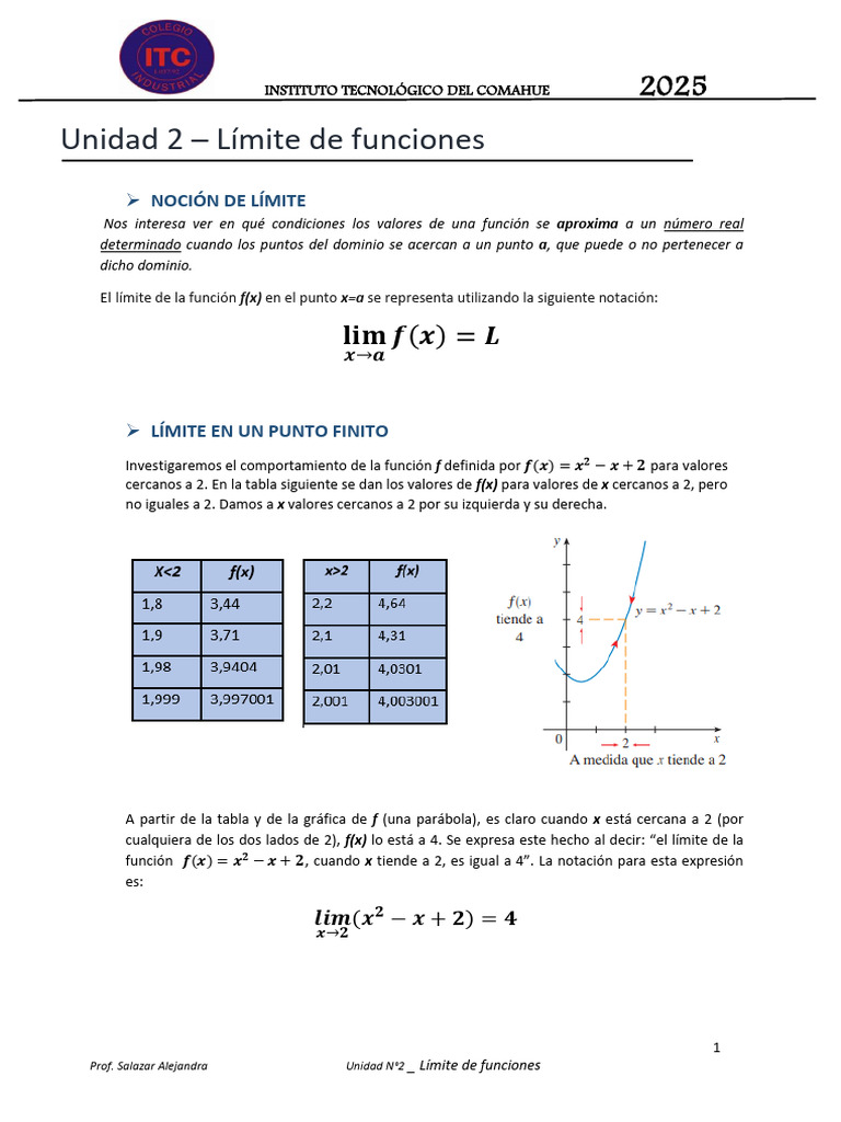 Prof. Salazar Alejandra Unidad N°2 _ Límite de funciones