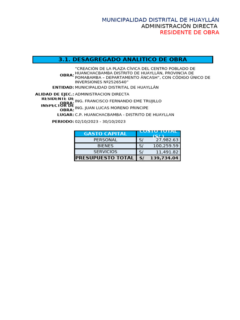 PLANILA DE TRABAJO N°1 - DEL 02/10/2023 - 30/10/20 S/ 27,940.00