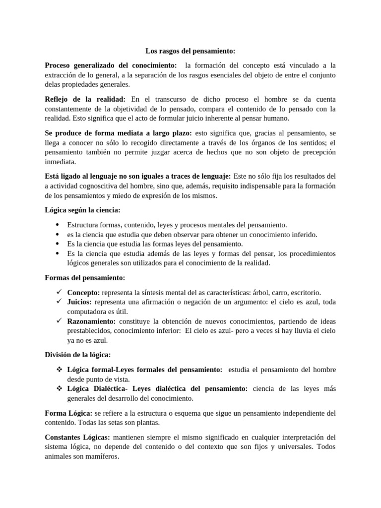 Estructura formas, contenido, leyes y procesos mentales del pensamiento.