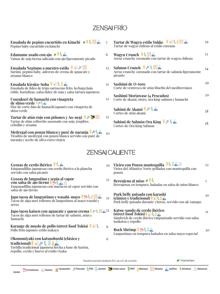 Nuestros precios incluyen IVA, no 10% de servicio -Vegetariano