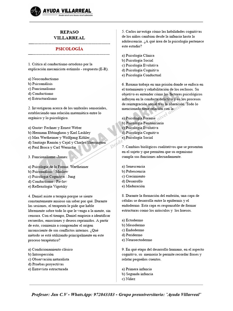 Profesor: Jan C.V - WhatsApp: 972043383 - Grupo preuniversitario: ¨Ayuda Villarreal¨