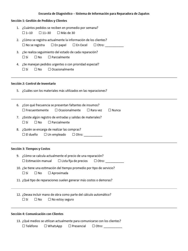 Encuesta de Diagnóstico – Sistema de Información para Reparadora de Zapatos